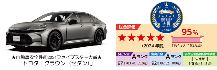歩行者頭部保護試験等で2024年度の最高得点を記録するなど優れた成績を収め、総合評価で