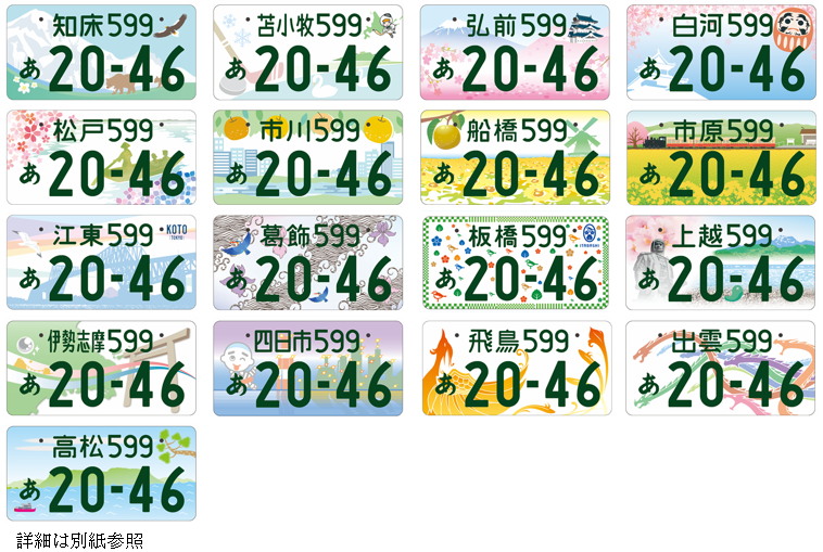 新たな地域名表示の地方版図柄入りナンバープレートデザイン(全国17図柄)(PDF形式:856KB)