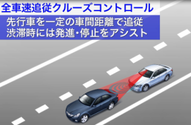 ドライバーの適切な周辺監視の下、高速道路等において、速度や前走車との車間距離を自動制御する装置(全車速追従クルーズコントロール)、車線の中央付近を走行するよう自動制御する装置(車線維持支援装置)等です。適切に使用すれば、運転者の負荷を軽減します。