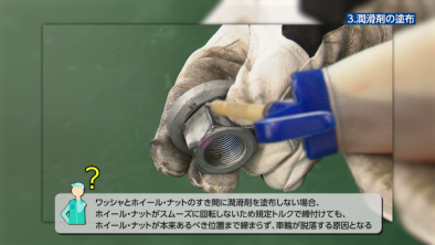 ○ホイール・ナットへの潤滑剤の塗布 ○増し締めの実施
