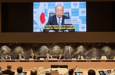 | 我が国は、国連自動車基準調和世界フォーラム(WP.29)*2において、自動車局車両基準・国際課安全基準室長が副議長を務めるなど、自動車の安全・環境性能にかかる国際基準の策定等に積極的に参画しています。 今回のWP.29に合わせて25周年記念式典が行われた1998年協定は、自動車基準の国際調和を推進するため、自動車の市場アクセスに関する制度*3が異なる国々が加入できる、よりグローバルな協定として、日本、米国及び欧州連合が主体的に原案を作成し、1998年6月にWP.29において採択された国際協定です。日本、米国、欧州連合のほか、カナダ、中国、インド、韓国などが同協定の締約国として世界の主要な自動車市場をカバーしており、これらの国々が、より高度な安全・環境に関する国際的な自動車基準(世界技術規則)の策定を通じ、安全・環境性能に優れた自動車の普及を目指しています。 25周年記念式典は、同協定の執行委員会*4の議長を務める当省職員により議事が進行され、豊田副大臣が祝辞をビデオメッセージにて発信し、その中で、我が国が水素燃料電池自動車や電動車の安全性、歩行者保護、排出ガス試験法など、多様な自動車技術に対応した世界技術規則の策定に貢献してきたことに触れつつ、全世界におけるより良い道路交通の実現のため、我が国が1998年協定の発展やWP.29の活動に、さらに積極的に貢献していく決意であることを述べ、同協定の25周年に祝意を表しました。 |