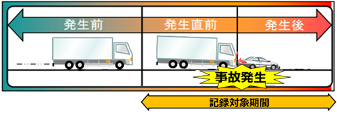 | 大型車の事故時の車両情報を分析しより安全な車両の導入や安全装置の開発を促進するため、事故時のデータを記録する事故情報計測・記録装置(EDR:Event Data Recorder)を備えることとします。 |