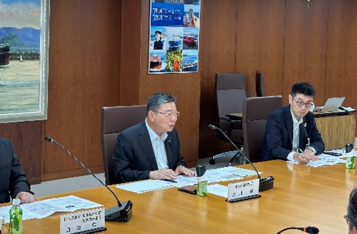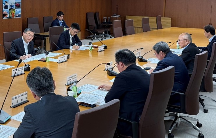 | 8月27日(水)、古川国土交通副大臣は、大手海運事業者である日本郵船(株)、(株)商船三井、川崎汽船(株)及び(一社)日本船主協会と、海運業界における米国関税の影響等について意見交換を行いました。 |