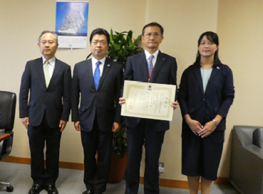 平成30年9月5日に、国土交通省海事局長室で表彰状授与式を執り行い、大賞の宮崎カーフェリー(株)からは