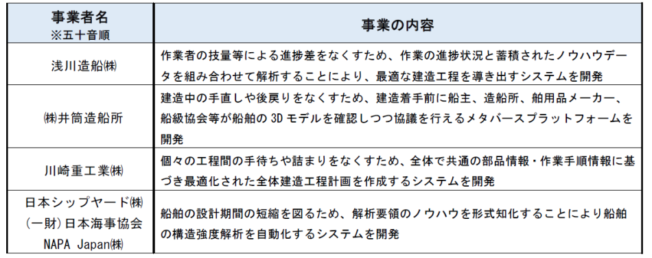 令和5年度革新的造船工程高度化補助事業 採択事業一覧