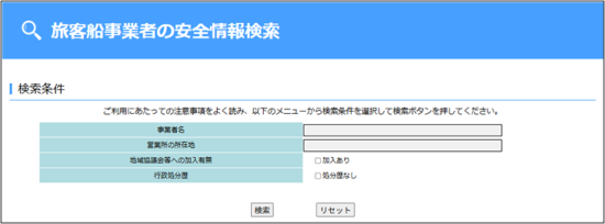 旅客船事業者情報検索サイト:https://www.mlit.go.jp/senpaku/anzen/ssi_search.cgi