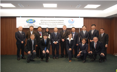 国土交通省海事局は、危険物及びコンテナの海上運送に係る国際規則の理解及び制度整備の促進を図るため、APECプロジェクト予算を活用し、海上輸送コンテナの取扱シェアの過半数を占める9カ国・地域が参加する初の「APECワークショップ/セミナー」を主催しました。