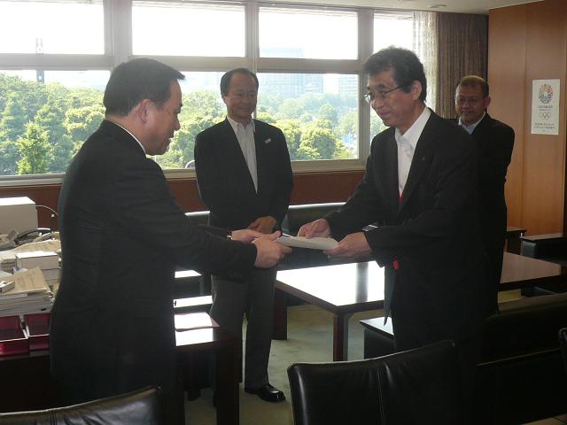 6月4日、平成26年の「海フェスタ」を、京都府舞鶴市を中心とした5市2町で開催することに決定し、梶山副大臣から多々見舞鶴市長に対し開催決定通知書を交付致しました。