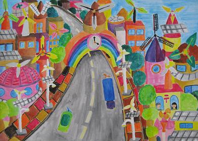 太陽光と風力発電を生かした未来の街