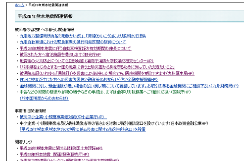 | ・「被災者の皆さまへの暮らし関連情報ページ」 |