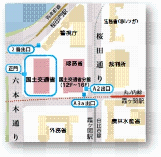 国土交通省(東京都千代田区霞が関2-1-3) ※MAPの正門よりお越しください。