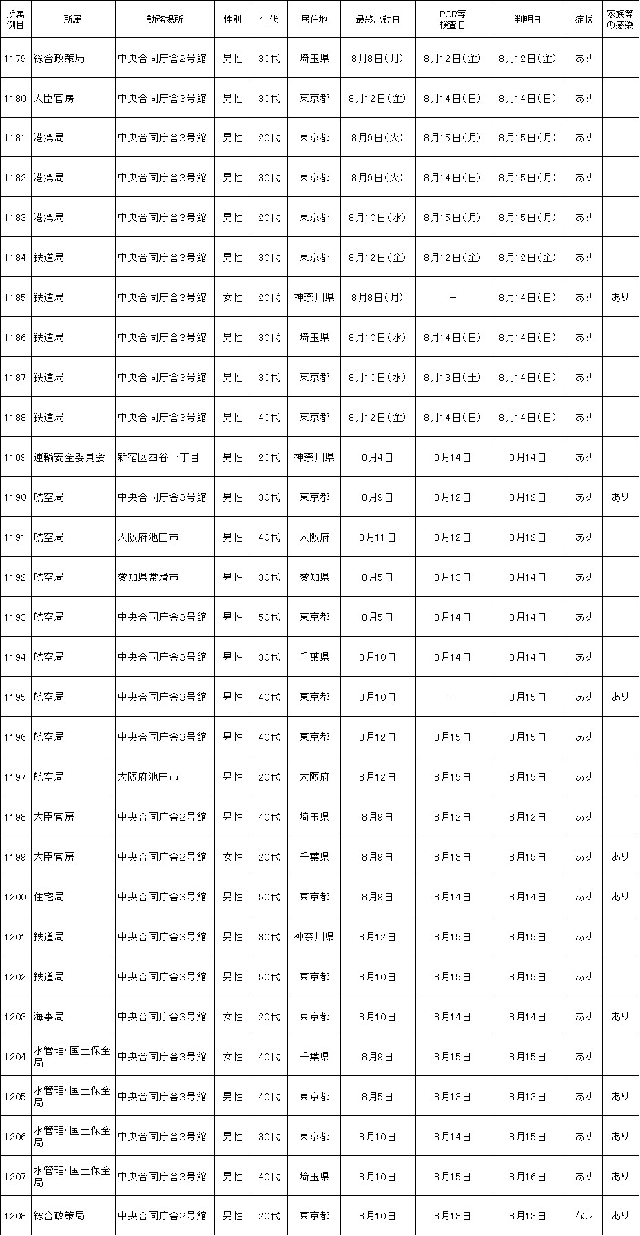 新たに国土交通省本省職員30名(1179~1208例目)が、新型コロナウイルスに感染していることが確認されました。