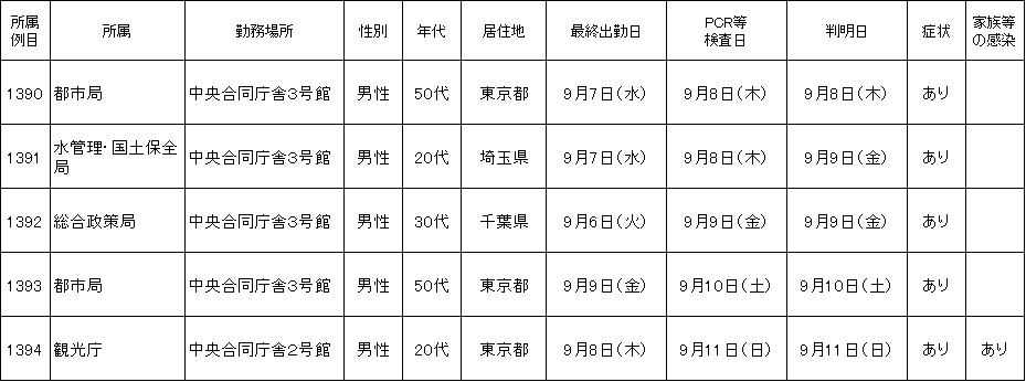 新たに国土交通省本省職員5名(1390~1394例目)が、新型コロナウイルスに感染していることが確認されました。