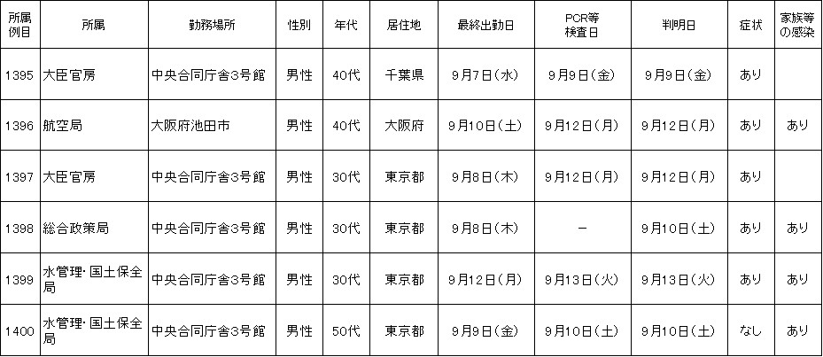 新たに国土交通省本省職員6名(1395~1400例目)が、新型コロナウイルスに感染していることが確認されました。