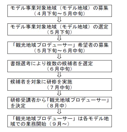 3.本事業のスケジュールは次のとおりです。事業の詳細については、平成20年度「観光地域プロデューサー」モデル事業について」(資料4)をご覧下さい。