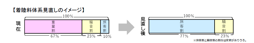 今後、着陸料の算定方式を旅客数に応じたものに変更することを前提として、着陸料の引き下
