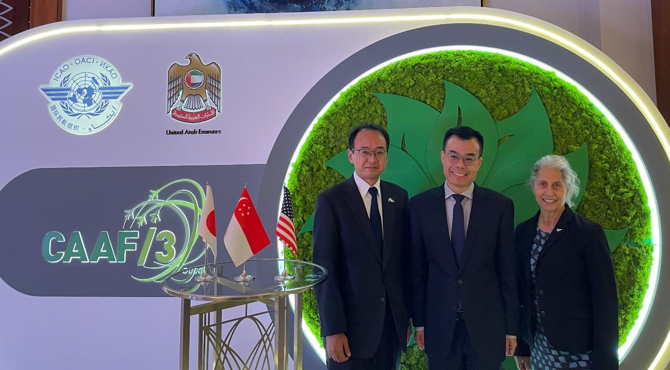 | 11月20日~11月24日に、国際民間航空機関(ICAO)航空及び代替燃料に関する第3回会合 (CAAF/3)※1がドバイ(アラブ首長国連邦)で開催され、SAF※2の利用促進に関する議論が行われました。 会議では、日本・米国・シンガポールの3か国が共同で、SAFの利用促進に関する「グリーンレーン構想」の政策コンセプトの提案を行いました。また、2030年までにSAFの利用により、5%の炭素削減を目指す中間目標の設定が合意されました。 ※1 CAAF/3(The third Conference on Aviation and Alternative Fuels:航空代替燃料に関する第3回会合)