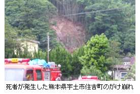 ・梅雨前線に伴う大雨により、熊本地震で地盤が緩んでいた熊本県内では、土石流やがけ崩れ等が発生した。