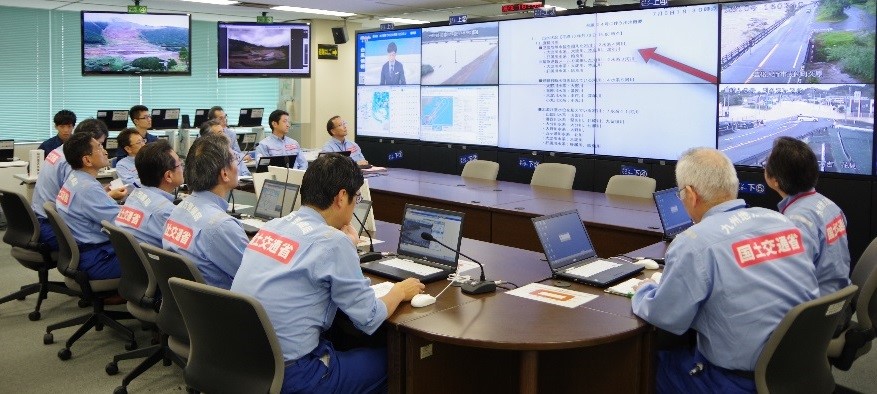TEC-FORCE 活動を強化するため、国土交通本省に『大臣官房参事官』を1名増員しました。また、防災体制の充実・強化を図るため、全国の地方整備局に『統括防災官』、『災害対策マネ ジメント室』等を新たに設置し、TEC-FORCE 隊員の派遣調整や現地活動の後方支援、指揮命令体制を強化しました。(平成31 年4 月1 日設置)