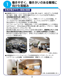 事業者が行う、[1]女性が働きやすい環境の整備等、職員の働きやすい環境整備に向けた取り組みや、[2]それを踏まえた人材確保の取り組みなど、先進的な取り組み例について、国土交通省が直接お伺いしたものから主なものを抜粋して作成しております。