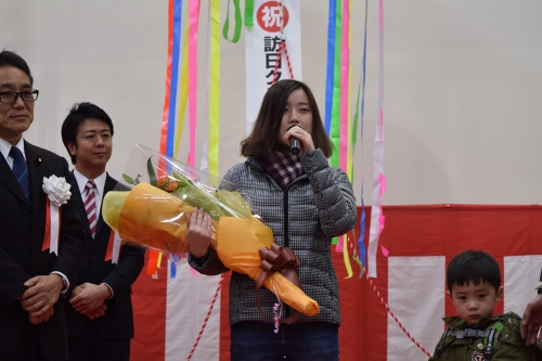 概 要 : くす玉開披、花束・記念品贈呈