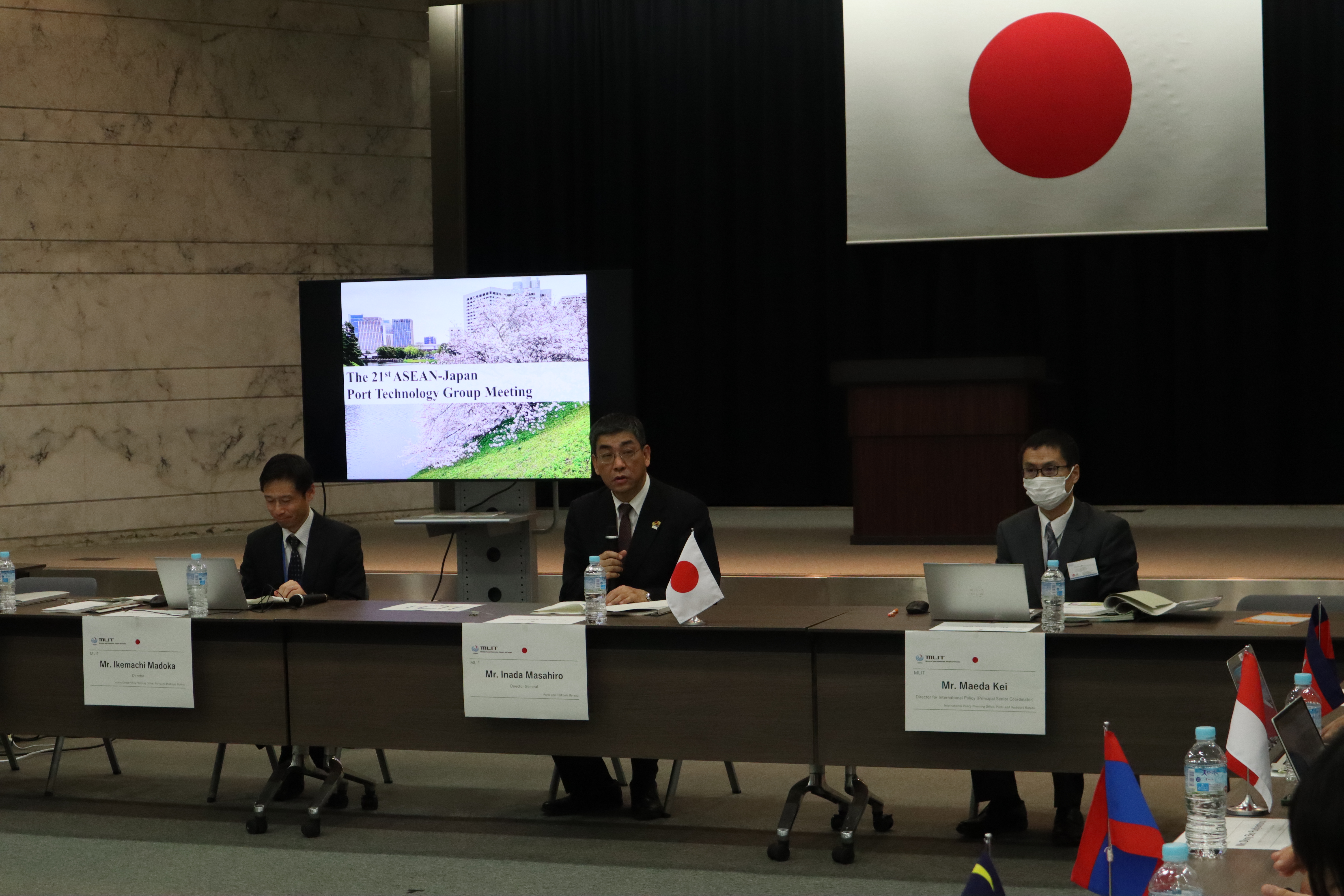1枚目:開会挨拶を行う稲田港湾局長 2枚目:ASEAN事務局の挨拶