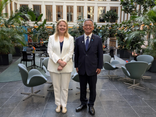 | 高橋国土交通副大臣は、8月12日(火)から8月15日(金)にかけてオランダ及びデンマークに出張しました。現地では、オランダインフラ・水管理省の要人と会談し、日オランダ間の港湾分野や水管理分野での連携強化について意見交換しました。また、オランダAPMターミナルズ社、デンマークA.P.モラー・マースク社の幹部と会談し、我が国に寄港する国際基幹航路の維持・拡大についてトップセールスを行うとともに、港湾の脱炭素化の取組等について意見交換を行いました。加えて、オランダロッテルダム港、デンマークコペンハーゲン港の先進的な取組を視察しました。 |