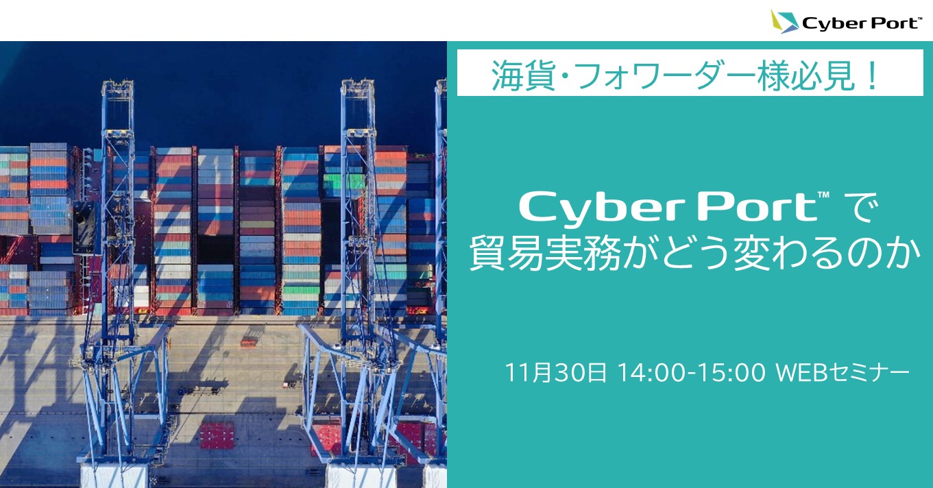 | 国土交通省港湾局は、民間事業者間のコンテナ物流手続を電子化・効率化するプラットフォームであるCyber Portについて、主に海貨・フォワーダー様向けに11月30日(水)に無料のWEBセミナーを開催します。 |