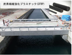 | PCホロー桁の施工状況(右上:CFRP) | リプレイサブル桟橋の施工状況 |