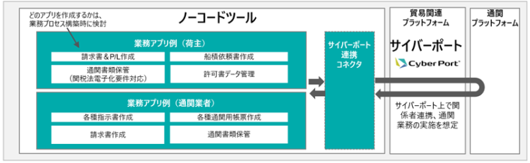 | 国土交通省港湾局は、民間事業者間の港湾物流手続の電子化を推進するプラットフォームである「Cyber Port」を運営しています。また、民間のプラットフォームや各種サービスとの連携を推進しているところです。 この度、Cyber Port の関連サービスの一つとして、ノーコードツールを活用したCyber Port による貿易・物流業務のデジタル化支援パッケージが、デロイト トーマツGTA&テクノロジーズ株式会社よりリリースされます。 |