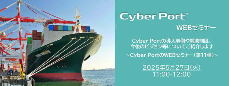 令和7年5月27日に「Cyber Port」に関するWEBセミナーを開催します。今回は、Cyber Portの導入事例や貿易プラットフォームの導入に関する補助制度、今後のビジョン(機能実装予定等)等についてご紹介します。 |