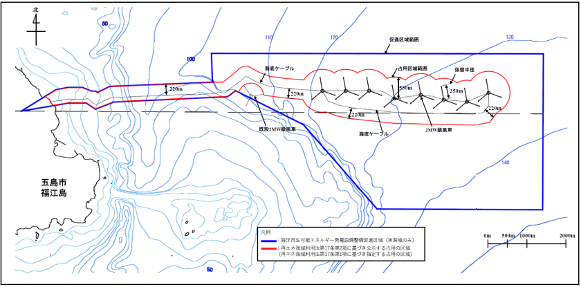 (2)今般、再エネ海域利用法第17条第1項に基づき、選定事業者から提出された公募占用計画について適切である旨の認定を行い、同条第2項に基づき公示します。