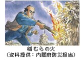 現在の和歌山県広川町で生誕。安政元年(1854年)突如大地震が発生、大津波が一帯を襲いました。このとき、梧陵は稲むら(稲束を積み重ねたもの)に火を放ち、この火を目印に村人を誘導、安全な場所に避難させました。その後も、被災者用の小屋の建設、防波堤の築造等の復興にも取り組み、後の津波による被害を最小限に抑えたと言われています。