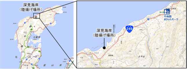 | 令和6年能登半島地震により被害を受けた能登半島沿岸部にある国道249号の緊急復旧を加速するため、防衛省と連携し、陸路でアクセス困難であった深見海岸(輪島市深見地区)への資機材搬入を実現しましたのでお知らせします。 |