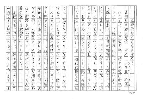 滋賀県東近江市立聖徳中学校 3年 八木 さくら 「危険‼土砂災害 」 |