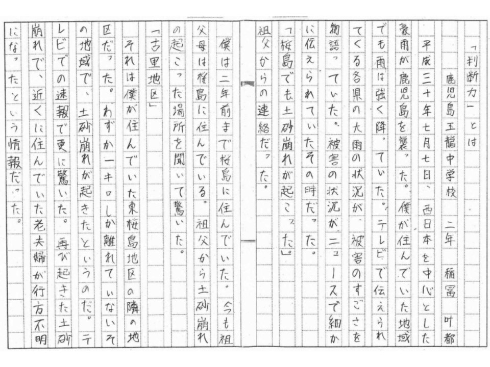 | 鹿児島市立鹿児島玉龍中学校2年 稲冨 叶都(いなとみ かなと) |