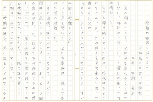 | 愛媛県 宇和島市立吉田中学校 2年 幸渕 美嘉 「土砂災害から身を守るために」 |