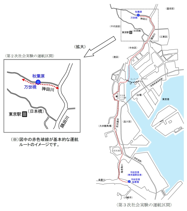 <「羽田-秋葉原間舟運社会実験」〔第2次、第3次〕 概要図>