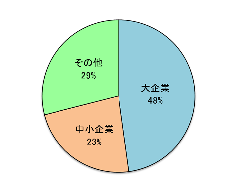 ※大企業および中小企業は、中小企業基本法の分類(製造業その他)を参考に、「資本金の額又は出資の総額が3億円以下の会社又は常時使用する従業員の数が300人以下の会社及び個人」で分類。なお、株式会社および有限会社以外の組織はすべて、その他団体とした。