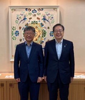 (斉藤大臣とITFキム事務局長の会談) (ITFキム事務局長と水嶋国土交通審議官、