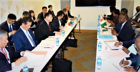 | 国土交通省は、令和7年1月10日にコートジボワール共和国政府と連携して日・コートジボワール官民インフラ会議をアビジャンで開催しました。日本からは、古川副大臣による開会挨拶のほか、官民の参加者による本邦技術・知見の共有や質の高いインフラの実現に向けた取組状況を紹介しました。同国政府からは、マンベ首相による基調講演のほか、各省から同国のインフラ整備案件や投資環境の状況説明と日本への期待について述べられ、両国の官民の参加者によるビジネスマッチングが行われました。 あわせて古川副大臣が先方政府のインフラ関係閣僚と会談を行い、同国のインフラ開発に本邦企業が参画し貢献することを期待する旨表明しました。 |