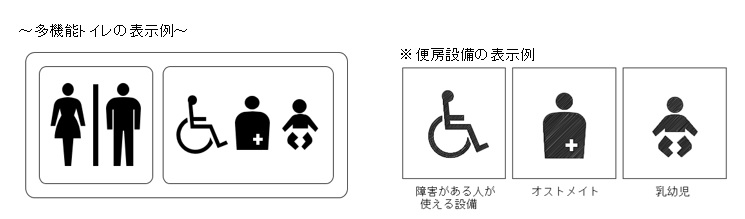 ○多機能トイレとは、車椅子使用者、オストメイト、乳幼児連れの方等が利用するための設備など様々な機能を備えているトイレです。