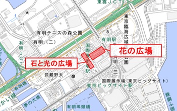 場 所 : お台場イーストプロムナード「石と光の広場」、「花の広場」