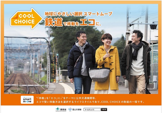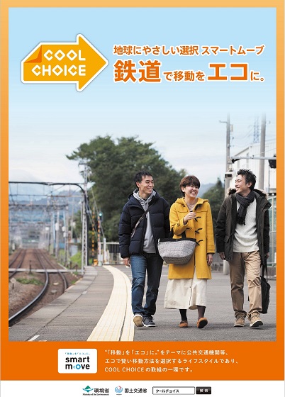 今般、国土交通省が推進している、エコな鉄道をもっとエコにする「エコレールプロジェクト※1」と、環境省が推進している、低炭素型の「製品」「サービス」「ライフスタイル」など、温暖化対策に資するあらゆる「賢い選択」を促す新しい国民運動「COOL CHOICE※2」が、それぞれの取組みの普及啓発を図るため、合同でポスターを作成いたしました。今後、全国の駅や電車内に掲出される予定です。