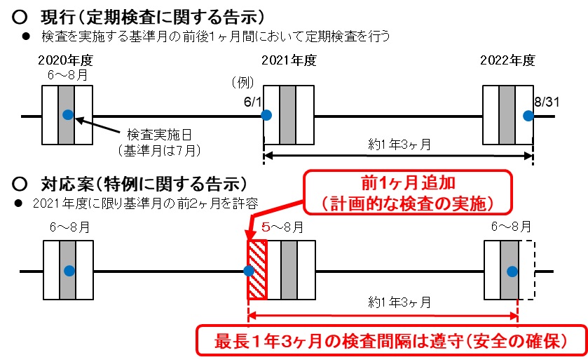 | 東京オリンピック競技大会及び東京パラリンピック競技大会の開催期間中、首都圏の鉄道において深夜輸送が行われる予定ですが、この影響等により終電後の施設検査について十分な作業時間の確保が困難となるおそれがあります。このため、安全を確保した上で弾力的な運用が行えるよう措置します。 |