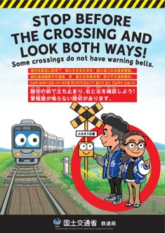 踏切の前で立ち止まり、 右と左を確認しよう! |