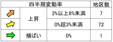 国土交通省が、主要都市の高度利用地等を対象に、四半期毎の地価動向を調査し、先行的な地価動向を明らかにするもの 。調査対象は全国80地区で、内訳は以下のとおり。調査結果の詳細は、以下のHPで公開。