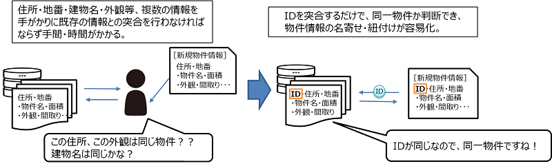 ・IDは、不動産登記簿の不動産番号(13桁)と特定コード(4桁)で構成される17桁の番号。 ・不動産番号のみで対象不動産を特定できない場合に、一定のルールに基づいて、特定コードに個別の符号を入力。 ○不動産IDの活用に向けた前提 ・IDを用いる上での基本的な前提・留意点として、不動産IDと個人情報保護法との関係、正確なID入力を促進するための留意点、IDを活用したデータ利用を検討する際の留意点を解説。 |