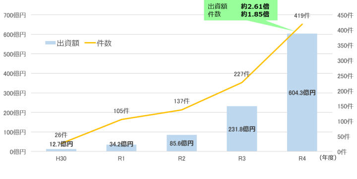 出資額は約604億円(前年度比約2.61倍)へと拡大しており、老朽化した施設の改修・再生等、地方での不動産投資に