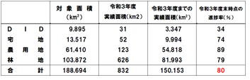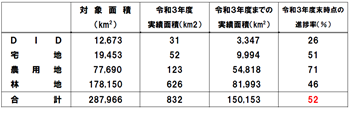 主に市町村が主体となって調査が進められています。令和3年度の調査実績は832㎢となり、令和3年度末時点